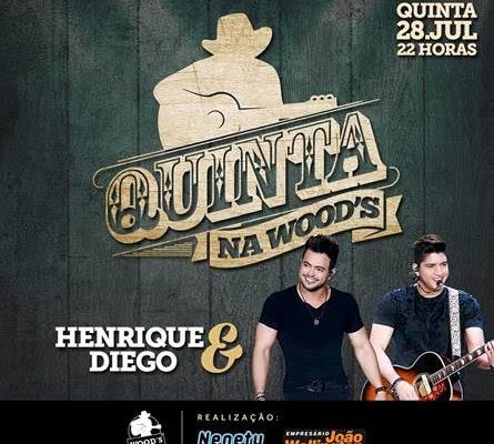 Pela segunda semana consecutiva, a Wood’s (Alameda da Serra, 154 – Vale do Sereno) será palco para o projeto “Quinta na Wood’s”. No dia 28 de julho, a partir das 22h, é a vez da dupla Henrique & Diego agitar a noite de quinta-feira mais animada de Belo Horizonte. Sucessos como “Suíte 14”, “Senha do Celular”, “Oh Delícia” e muitos outros farão o público cantar e dançar do início ao fim do show.